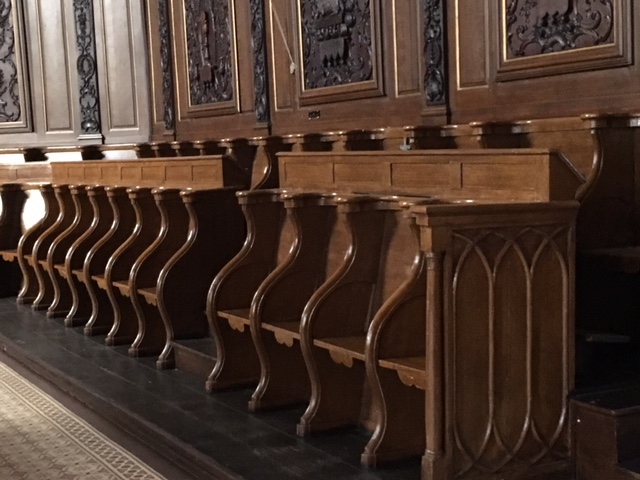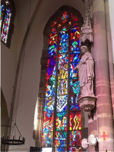 We also saw organs at Blamont (Église Saint Maurice) and Fénétrange (Église Saint Rémi). You’ll notice that I’m taking a lot of pictures of organ staircases plus photos of pews. I’m so astounded that some of the “pews” are only 8-9 inches wide—you certainly can’t get comfortable on them, that’s for sure! I remember going to a church in Rudesheim, Germany, where I proclaimed the pews as medieval torture devices, with a bar sticking out in the middle of your back, to prevent you from leaning back. Aaaurgh!