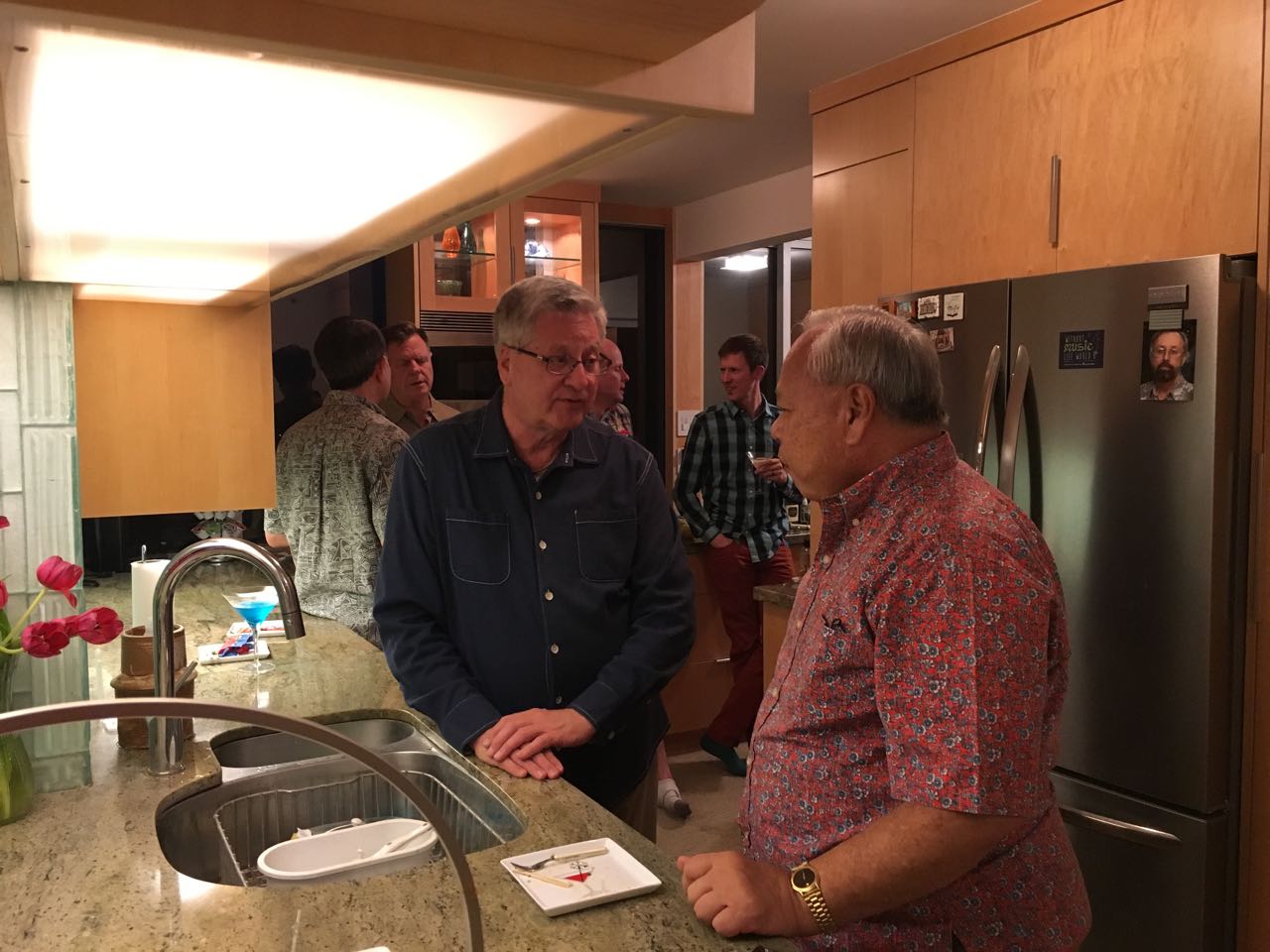 People congregated around the bar area where guest bartender Scott Fikse was making martinis, in the spirit of Carl Crosier, whose large gin collection I am always happy to share!